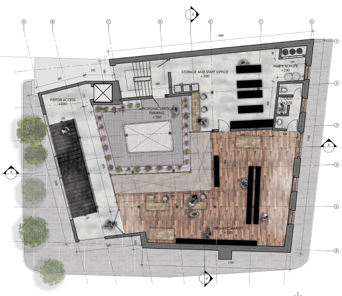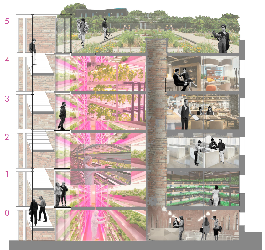 Re-Wa, stands for reusing waste, is an adaptive reuse project for a grade II warehouse located in 55 Great Suffolk Street, London to become a zero waste food hub. It is a project of visualizing an edible future where environmental consciousness in consuming a food becomes comodity.