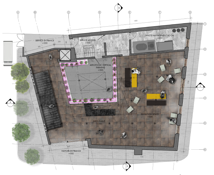 The dining experience merge with open kitchen to see how we are processing the ingredients, also the vertical farm to know where the ingredients comes. We use our own ingredients to eliminate delivery carbon foot prints, we minimize the choose of menu, and we tried to process the ingredients from roots to top to reduce waste.