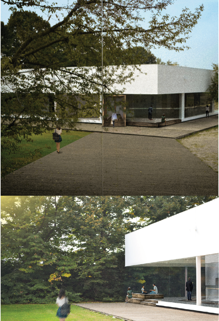 Jewellery design is an art practice that develops through years. The methods of their work has varied from a manual stone work through digitalized engraving. We wanted to brought the concept of ‘tracing the past’ into the space in order to manage and connects the 3 function into the space. We traced the strong axis from the existing diamond pavilion in front of the glass cube and used it as the ‘divider’ line of functions. We placed the function according to the site analysis and engraved our concept through each spaces.